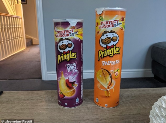 事实上,不仅仅是加拿大和美国的居民正在面临通胀,英国的商品也在悄悄缩水…… 品客薯片的体积一下子变小了这么多。