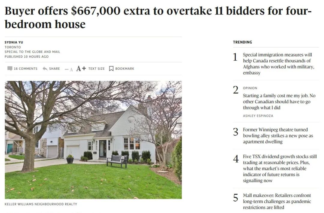 据加拿大媒体《环球邮报》7月23日报道,这座独立屋被卖出前挂牌时间只有6天,2013年12月售价仅为117.1万加元,8年后却以290.5万加元的价格成交。