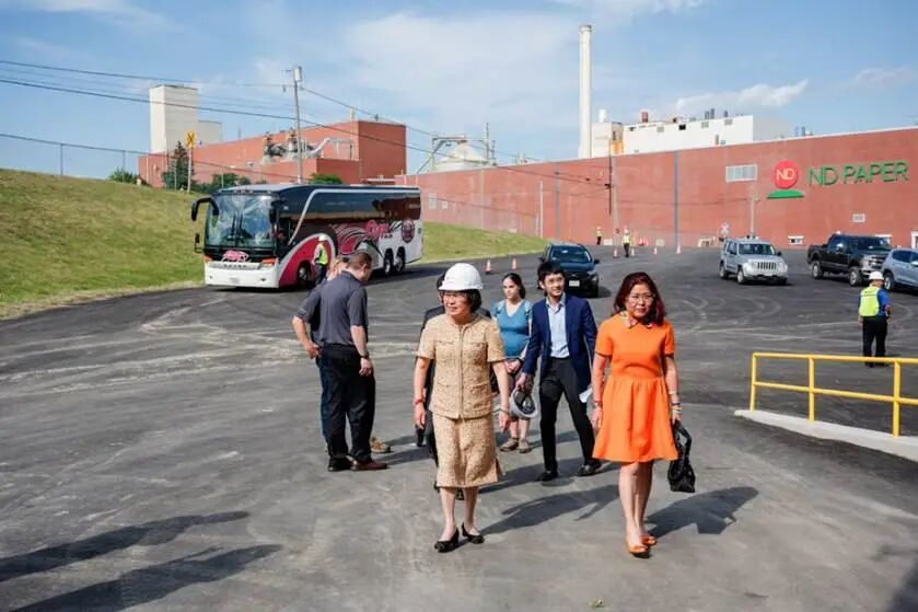 张茵(中)在美国收购倒闭的纸浆厂(图源:nytimes)