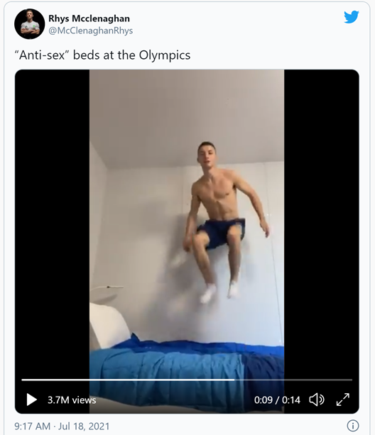 爱尔兰体操运动员Rhys Mcclenaghan就在推特上发布了一段视频,驳斥人们对于床架承载能力的质疑。