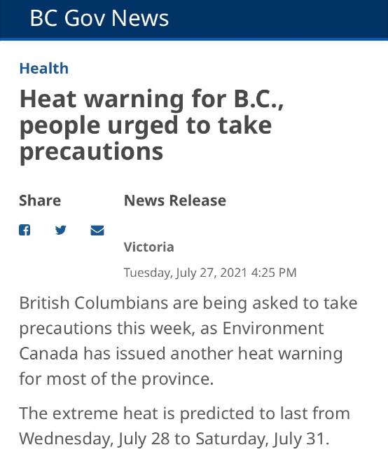 为应对本次高温,BC省府特地发布安全指导手册,以提醒大家预防潜在风险。