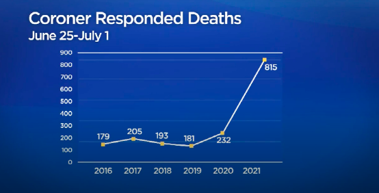 6月份,一场突如其来的高温天气造成815人死亡,大大高于往年死亡人数。连绵不绝的山火直到现在还在BC内陆熊熊燃烧。