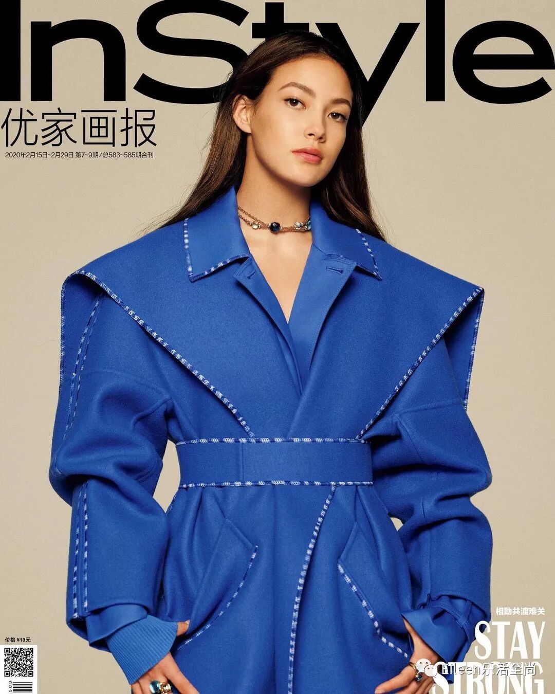 这件Sportmax的宝蓝色廓形大衣,也让她穿出了酷飒的味道。