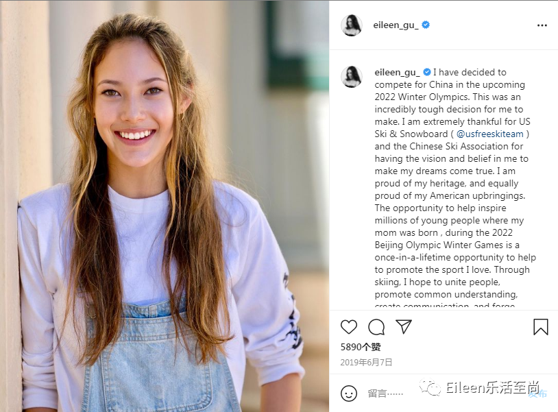 2019年6月初,已经拿过世界冠军、正在巅峰期的谷爱凌,在国内外的社交账号上,都宣布已决定成为中国公民,要代表中国参加2022年的冬奥会。