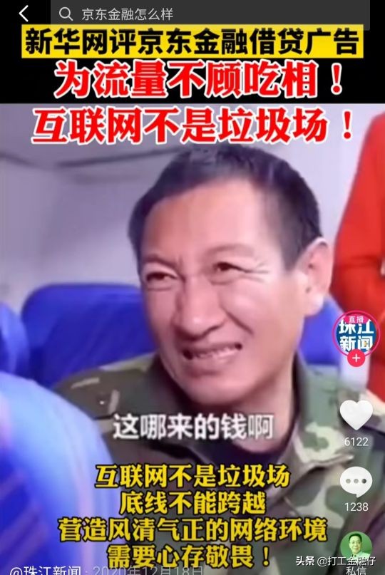 后排的西装大哥,在农民大哥表示无钱升舱时,大声道:我来帮你,请将手机给我。猛然一听,这西装大哥是一位大善人,要慷慨然解囊相助。然而这位大这位大哥并不是用自己的钱帮助农民工升舱,而是接过农民工的手机,“帮”他在京东金条上借了15万,并认真地介绍了京东金条的优点。试问:这京东金条上的钱不用还吗?还是没有利息?还是西装大哥家开的?这显然是强制消费,没有经过农民大哥的同意,就稀里糊涂地把款给贷下来了。看似“帮”忙,实则是农民大哥被下套了。本就不富裕的生活还要背上一笔欠款,还是一个高息贷款。如果还不上,征信黑户就是板上钉钉了。有的网友犀利指出,“这明明是在把穷人往火坑里推,却搞得像是施舍救助一样。”