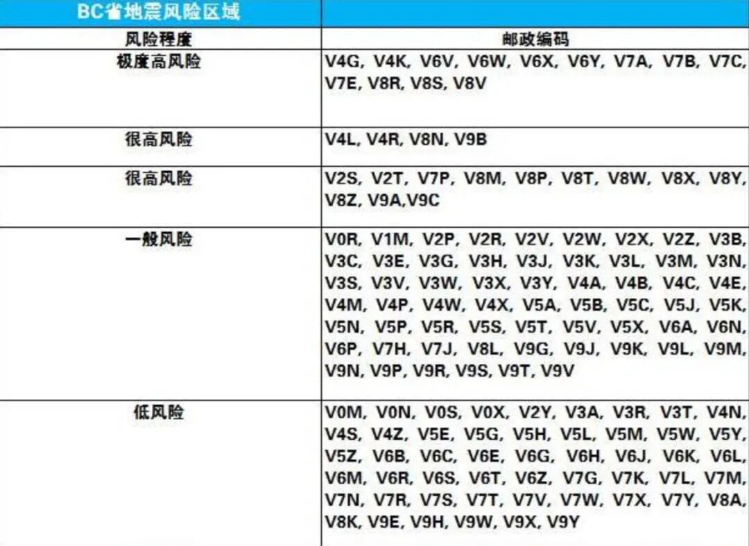 还有人以邮政编码罗列了大温地震后不同区域的危险等级,相信在这场6级地震风波之后,又会有人开始关注被列为危险和极度危险的邮编区域。