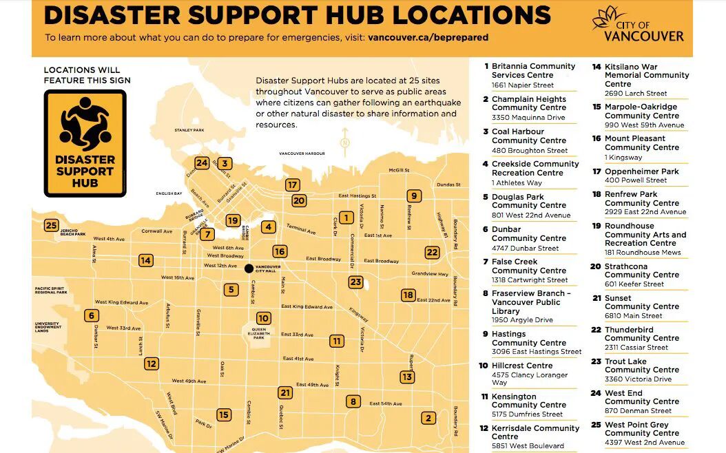 而温哥华市政府也早就为灾难性地震做好准备。在全市范围内总计设置了25个避难点。