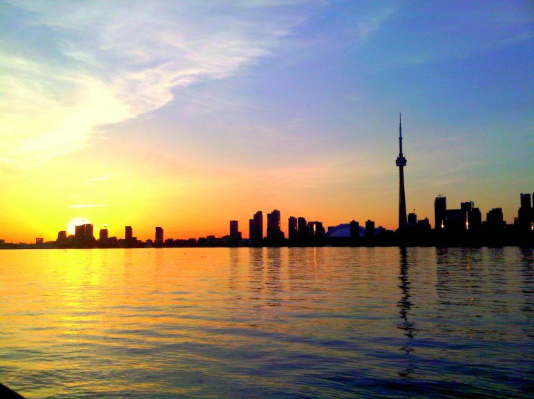 前往多伦多观赏落日,你既会看到高耸入云的现代化建筑,也会看到波光粼粼的银色海面。一半是海水,一半是火焰,正是这般情境了。