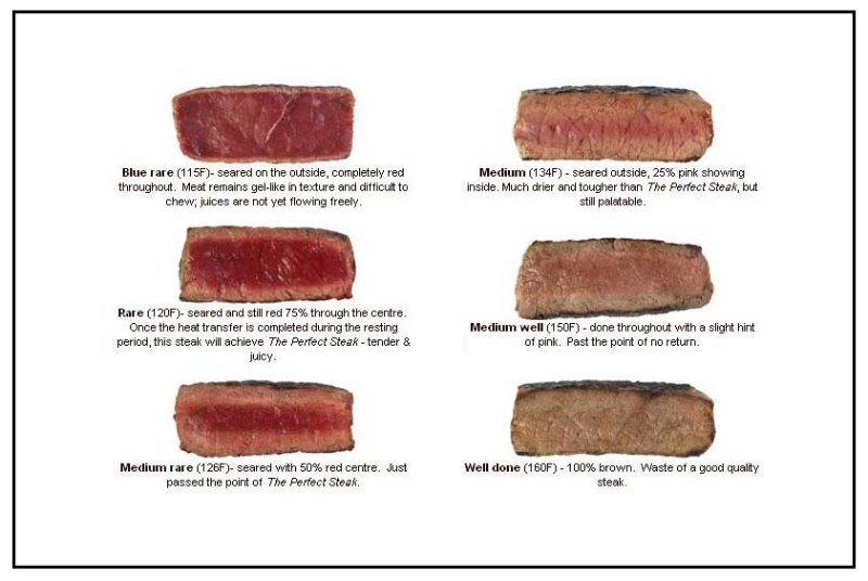 此外,点牛排时通常还要告诉厨师您想要的熟度。常见的熟度有以下几种: