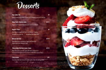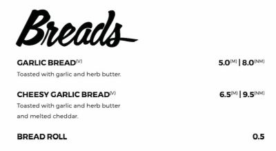 比如,有的餐厅可能不会以这三大版块作为菜单分类,而是把每一项中的菜品按种类单独列出,比如把前菜中的Bread面包、Salad沙拉、Soup汤分别列一栏,各自罗列可以提供的种类;