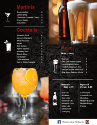 通常餐厅会有一个专门的饮品菜单,叫做Beverage,在一份菜单的最后部分,或者是一张单独的菜单,包含酒品,或者非酒精类的果汁、咖啡或茶等等。