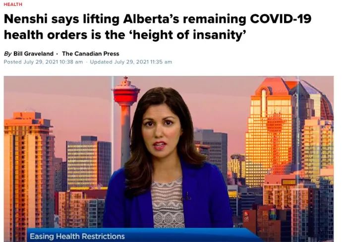 正在卡尔加里机场发表声明的卡尔加里市长Naheed Nenshi甚至说,假如他在另一个司法管辖区执政,他会认真考虑要不要从 8 月 16 日开始对来自阿省的人进行旅行限制。