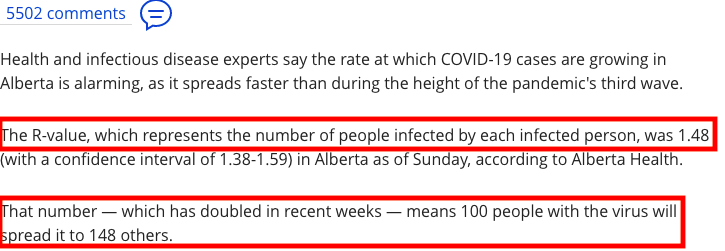 截至周四上午,阿省感染人数达233,875人,根据阿省卫生厅的消息,当地的病例增长速度令人震惊,传播速度比第三波疫情高峰期还要快。截至上星期日,阿省的R值在最近几周翻了一倍,升至1.48,意味着每个感染者可传播给1.48人。