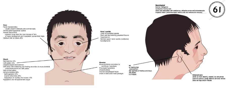 TCS也被称作“无脸症”,这是一种单基因常染色体显性遗传病,会导致耳朵、眼睑、颧骨、下颌骨等不能正常发育,在新生儿中的发生率约为1/50000。