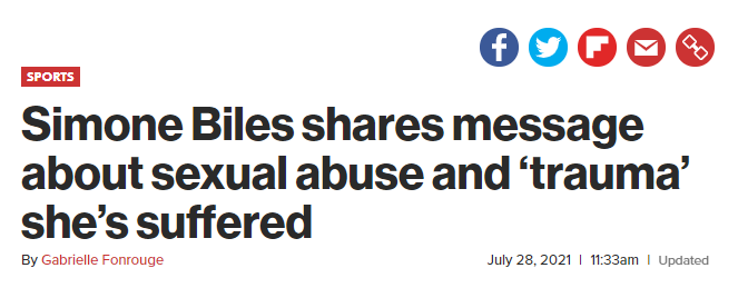 其实,西蒙·拜尔斯在所有的成绩与光环背后,她还有另外一个身份——性侵受害者。
