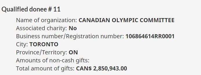 而能够提供的资金其实不多,根据加拿大奥林匹克基金会2020年财务报告,基金会2020年整体收入1,000万加元,为运动员和其他运动组织提供的支持有796万加元,而这些要分给45个组织和机构。