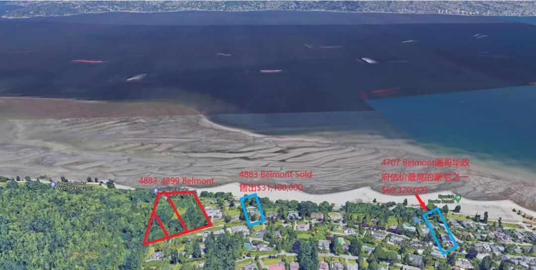 作为温西顶尖豪宅区,Point Grey一直都是顶尖豪宅聚居地,目前在售的光是超过2000万的就有6套,最贵的位于Belmont豪宅街,开价3890万元。