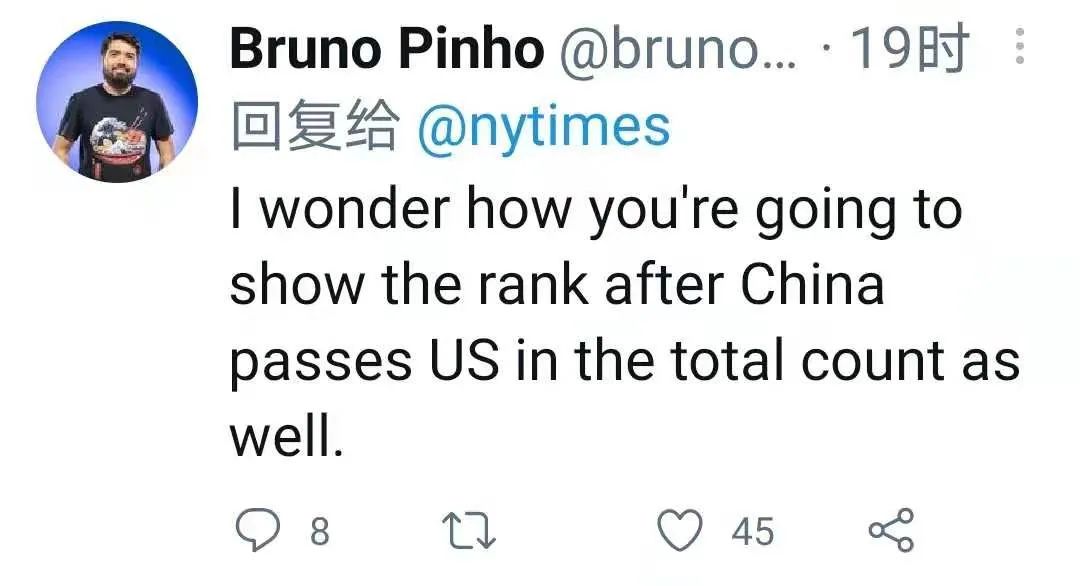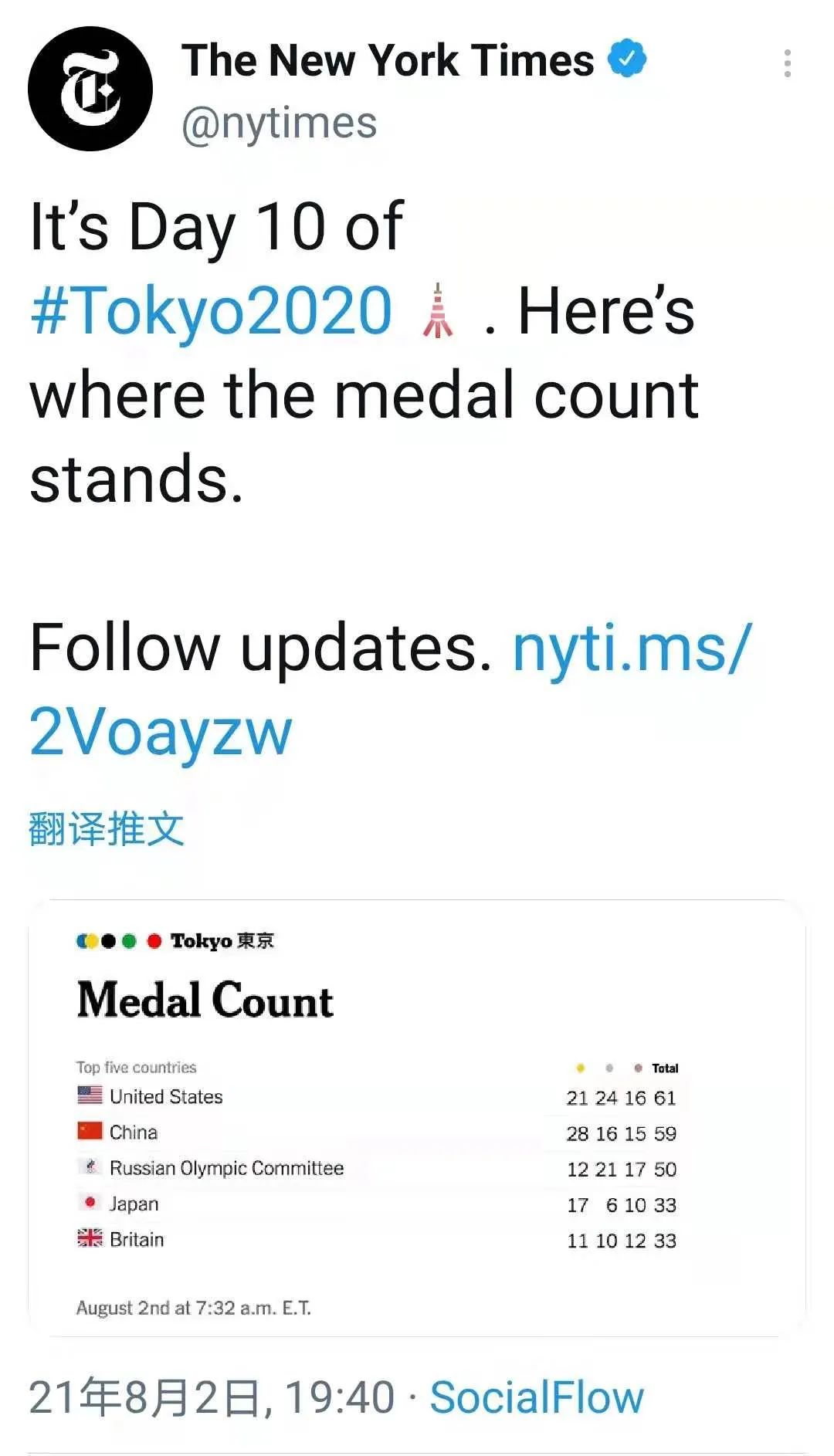 讽刺的是,批判中国以拿金牌为目标的《纽约时报》,却执着地发布以奖牌总数排名的榜单,确保美国排在第一名。在意金牌到这种程度,连金牌数不如人都无法直面。