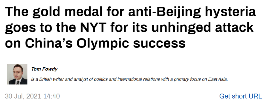 《纽约时报》发表精神错乱的文章攻击中国奥运的成功表现,并凭此获得了歇斯底里反华项目的金牌