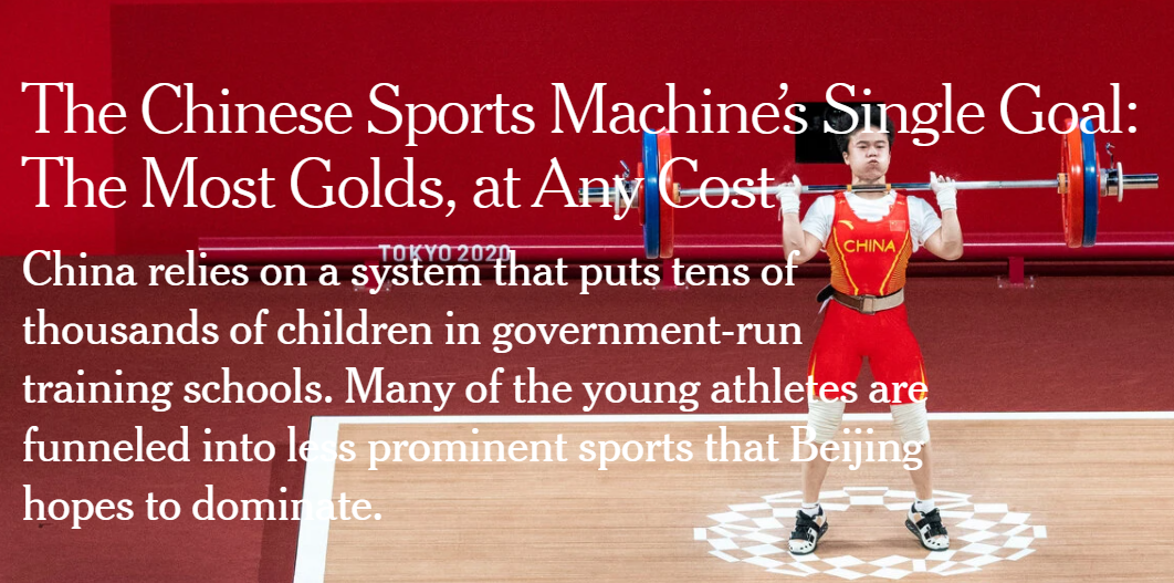 《纽约时报》近日就发表了这样一篇奇文,标题称《中国体育机器的目标只有一个:不惜任何代价,拿下最多金牌》。