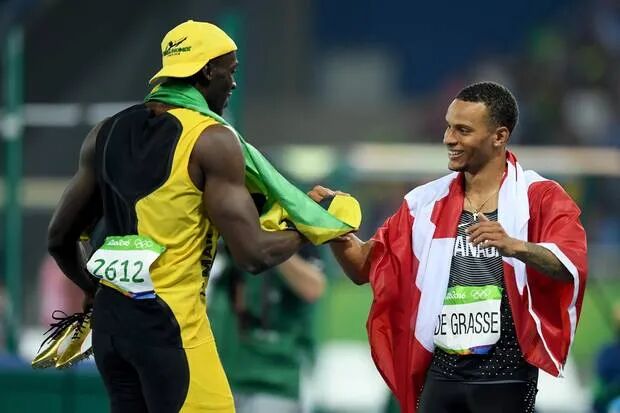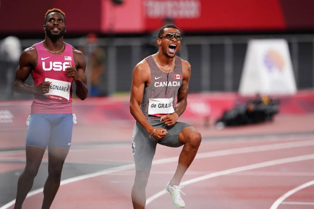 来自加拿大安省的小伙儿安德烈·德·格拉斯(Andre De Grasse),墨镜遮面,看不出他的神情。