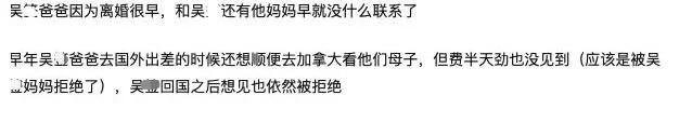 据网友爆料,早年吴亦凡爸爸有想过去加拿大看望自己儿子,但是被吴亦凡妈妈拒绝,耗费很多力气都没有见到。后来吴亦凡回国发展,爸爸想见一面,依旧被拒绝。