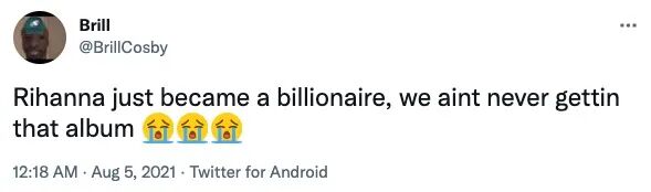 蕾哈娜刚成了亿万富翁,我们再也不会等到下张专辑了。