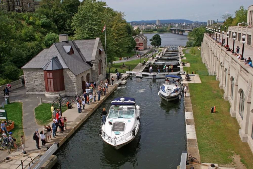渥太华的另一个古迹,位于一号公路出口不远处的里多运河国家历史遗迹。类似兰里堡那样,这里也是“抚古追今”的好去处。