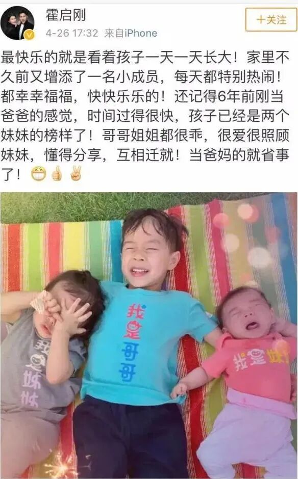 霍爸爸的带娃水平“有待观察”,但是乖巧懂事的小家伙们得到了大家的交口称赞。