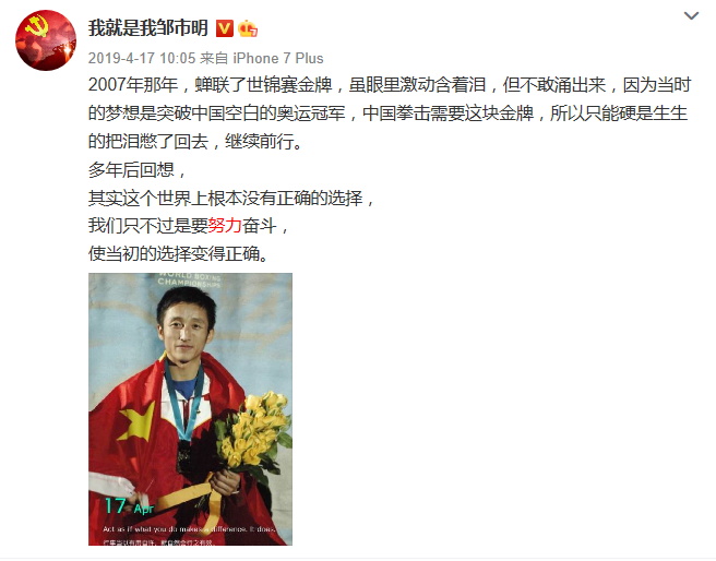 邹市明:我绝对不是条件最好的,但是我绝对是最努力的。