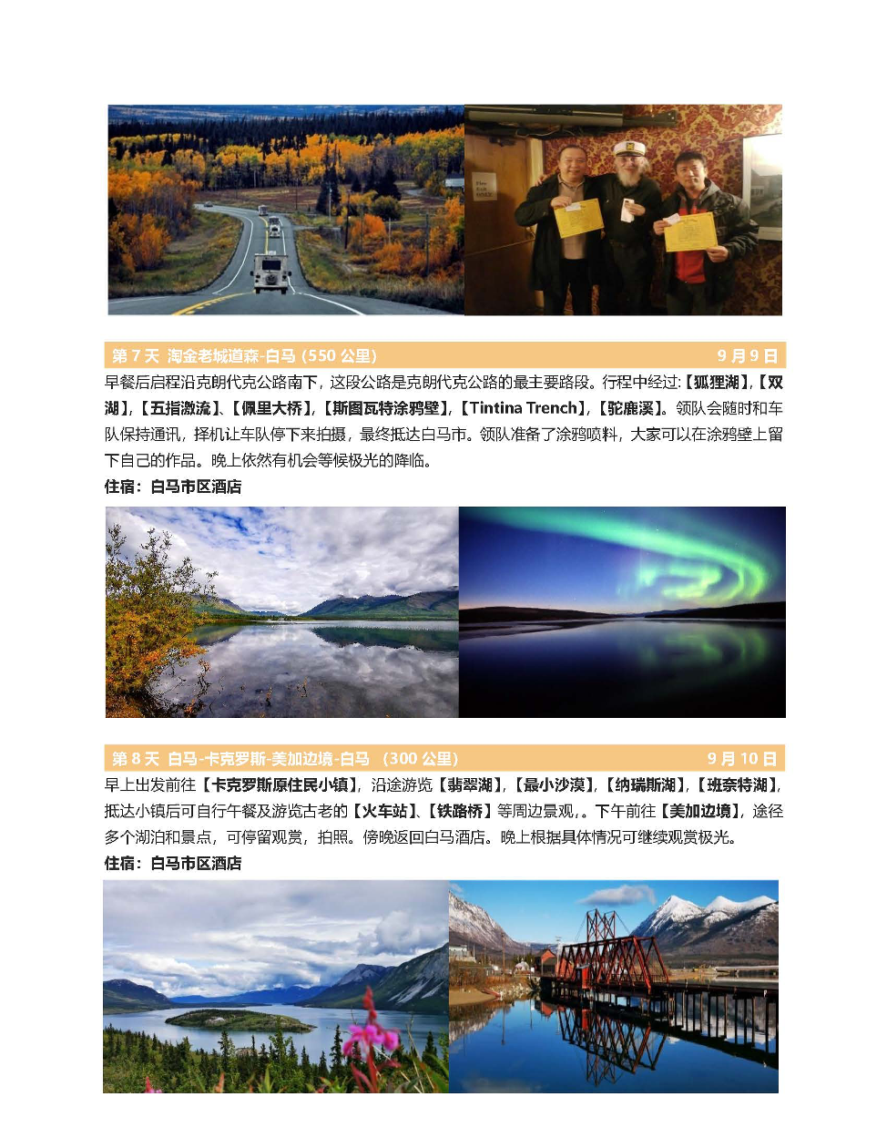 我们的车队由育空经验丰富的金牌华语向导带领,温哥华本地领队陪同,备有卫星电话、无线电通讯、气泵、接电线、拖车绳、防蚊喷剂、防熊喷剂等等,为团队平安顺利出游保驾护航。