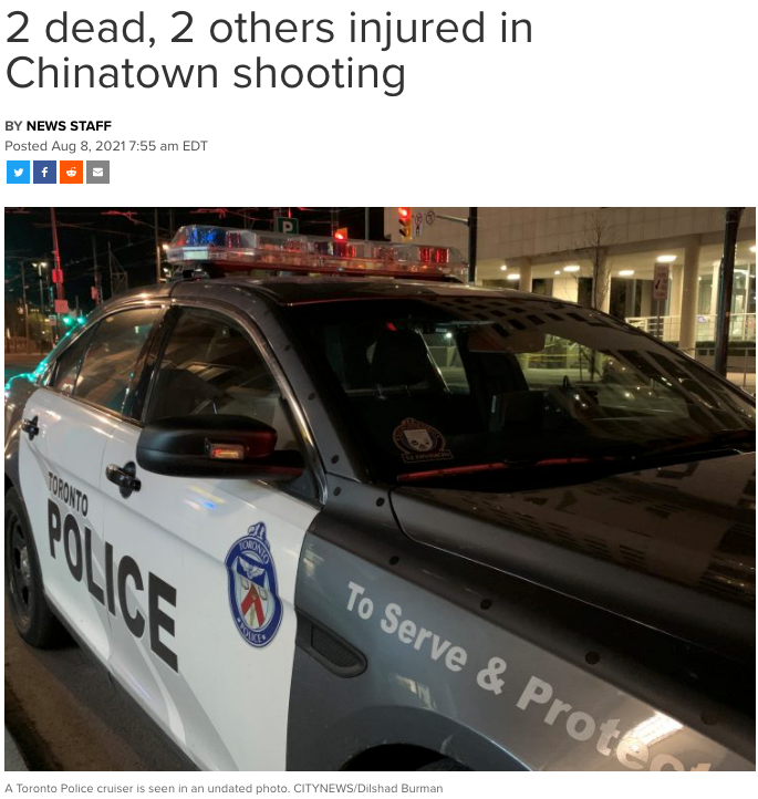 多伦多医护人员说,有两人在现场被宣布死亡,另外两人被送往医院创伤中心,性命危殆。