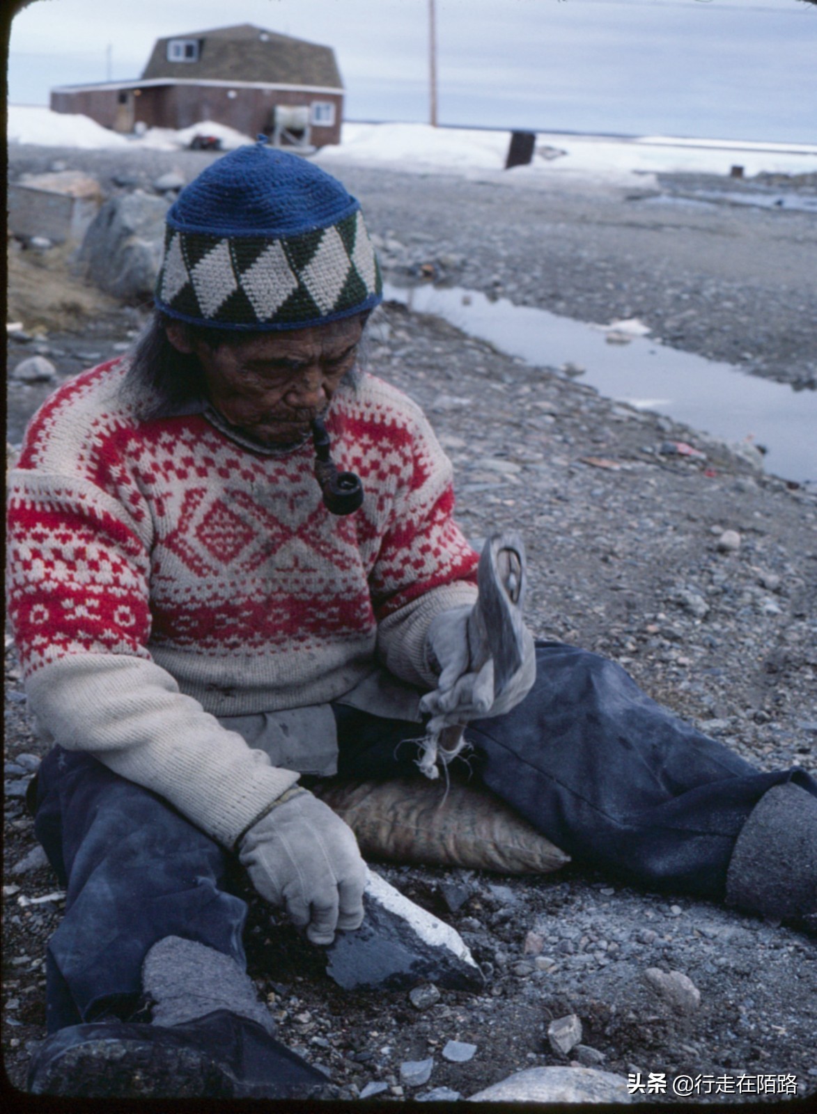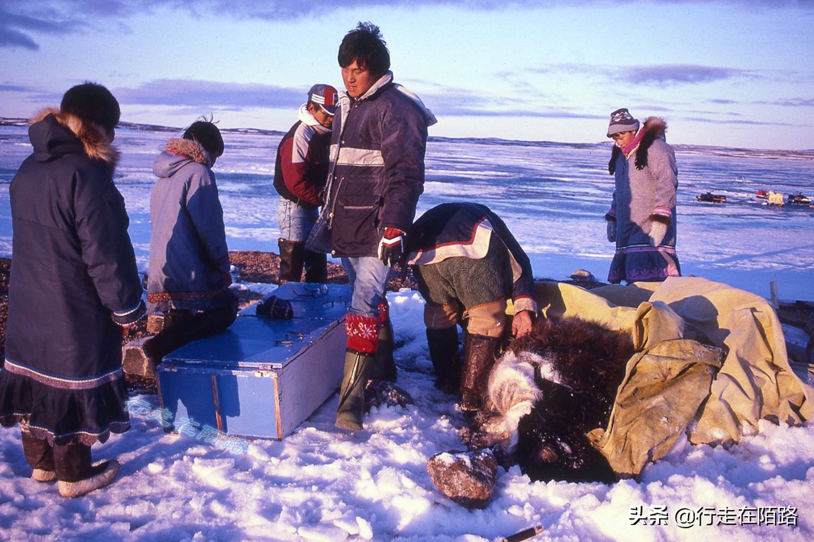 从小在贝尔彻群岛长大的因纽特人阿利阿帕跟我说,他的父亲曾经做过一件非常疯狂的事情,因为烟瘾上头,父亲联合其他三人去哈德逊湾公司开设的邮局偷烟丝,他们先是乘着独木舟去40公里外的对岸,在风雪中步行15公里抵达邮局,撬开大门拿到5磅烟丝后再原路返回,前后花了一周时间。