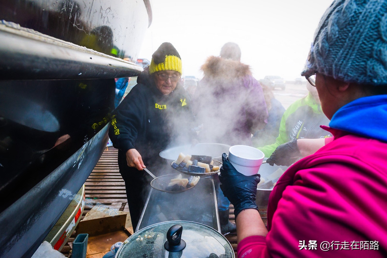 说实话,鲸脂鲸肉并没有我想象中的那么美味,口感软滑,略带鱼腥又偏油腻。虽然口感不太好,但因纽特人可不仅仅在乎吃饱,更多的是补充难得的维生素,对老人与儿童至关重要。