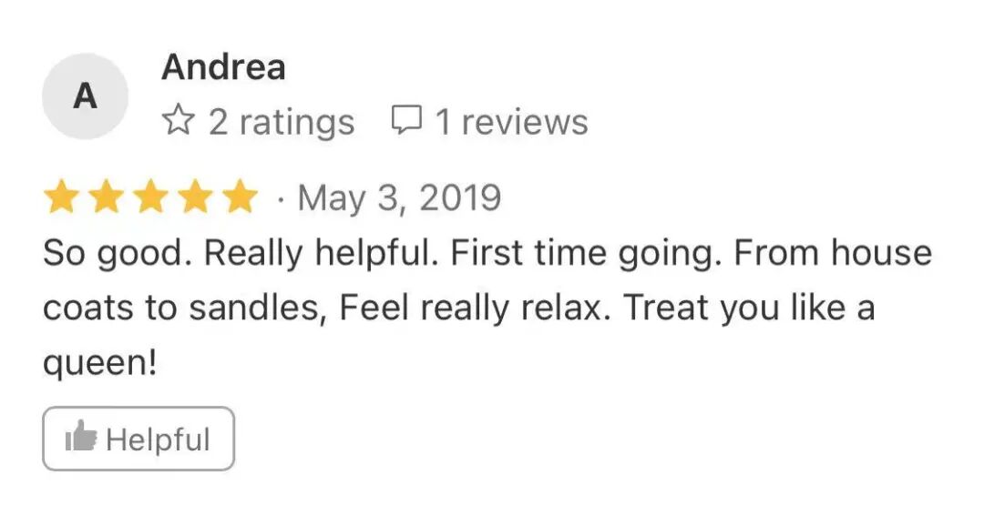 太棒了!我第一次去,从浴袍到拖鞋都那么精致,简直把我“宠”成了皇后。