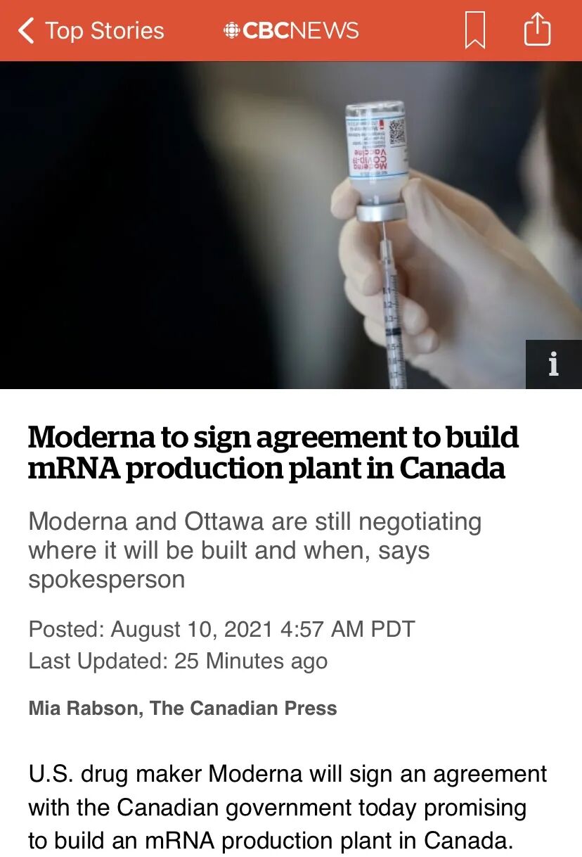 这是特鲁多政府在过去三个月中在加拿大制造mRNA疫苗的第二笔重大交易。今年 5 月,渥太华宣布将向安大略省密西沙加的Resilience Technologies提供1.99亿加元,以推进其生产新冠疫苗的能力。