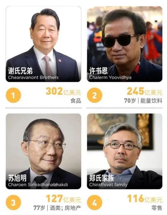 再来看泰国,福布斯2021年泰国富豪榜里,前四名全是华人。
