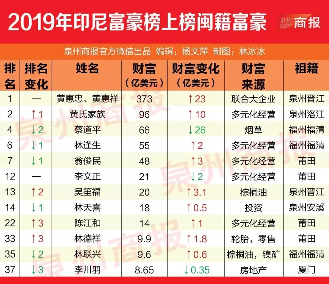 在“2020福布斯全球亿万富豪榜”上,祖籍福建泉州的黄惠祥、黄惠忠兄弟排在印尼富豪榜首位。“印尼首富”的宝座,他们已经连续坐了12年。