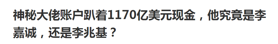 如此劲爆的消息让人们对这个神秘账户越发好奇,有人甚至猜测这会不会是香港的李嘉诚和李兆基等大佬,还分析得头头是道。