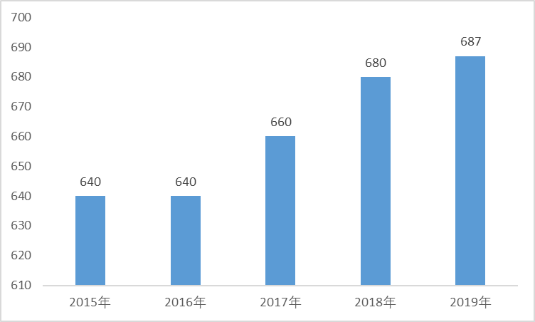 2019年我国钻石首饰需求量约人民币687亿元。2013年至2019年我国钻石首饰消费需求量情况如下:
