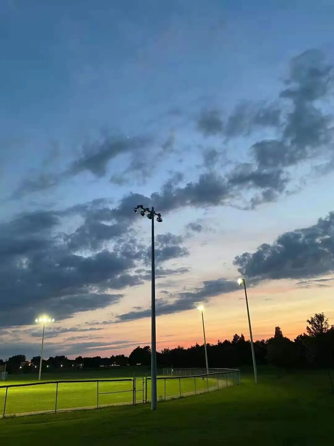 “挺大挺大的一个公园,还有一个灯光球场,刚赛完球,红蓝两队的队员陆陆续续地往出走。我们看了一会儿热闹,就顺着公园的石子路往里走去。”