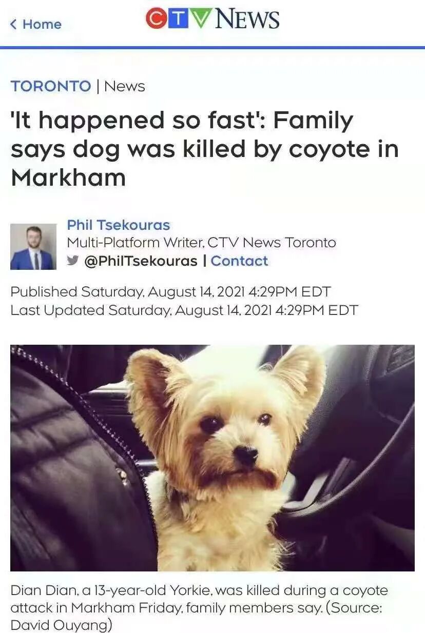 上周五晚,岳父和岳母带着“点点”在16街与9街附近的Mint Leaf Park公园散步,受到郊狼攻击。一开始,他们以为只是遇到了另一只狗……我现在还觉得这是在做梦,因为事情发生得是太快、太突然了。
