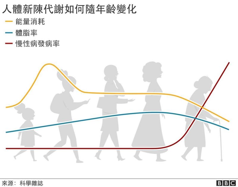 - 之后持续下降逐年递减,到90岁时新陈代谢比中年时低26%。