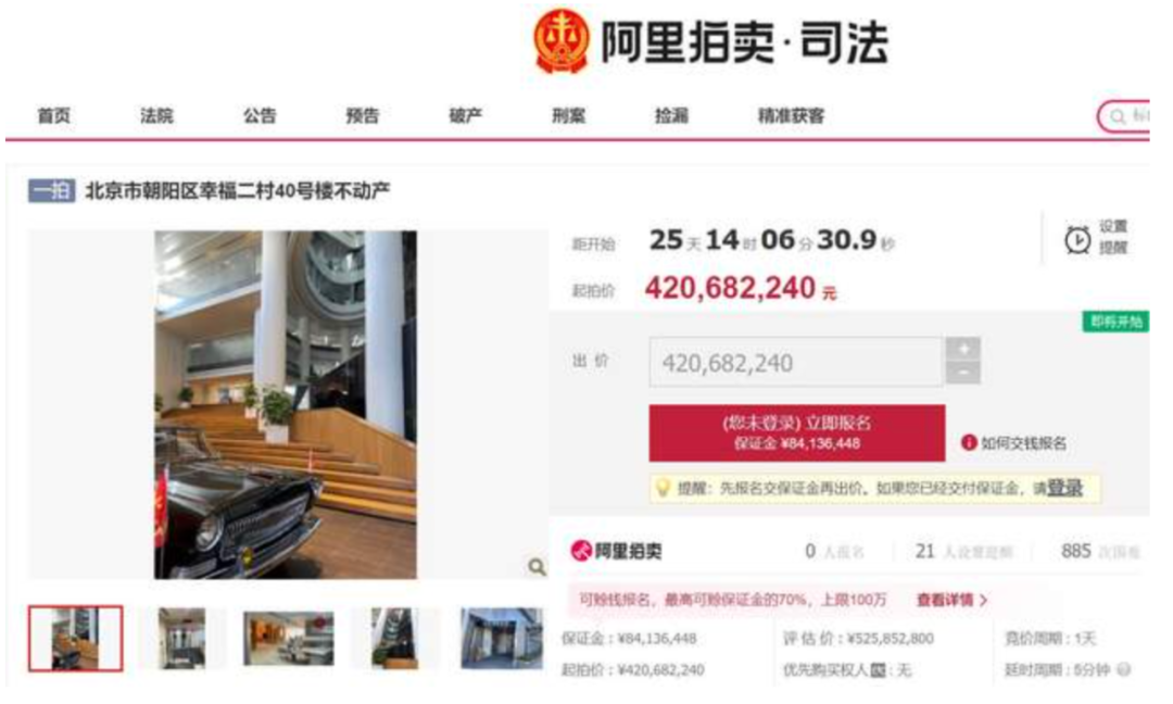 更吊诡的是,通报出来后,吴亦凡背后的“大老板”直接高价出售豪宅。日前,阿里拍卖更新一则拍卖公示显示,北京市第三中级人民法院将于9月11日,对北京市朝阳区幸福二村40号楼不动产进行拍卖,起拍价约4.2亿元,而物业所有人正是吴亦凡曾经的老板,昔日百亿富豪綦建虹。目前,共有近千人围观拍卖,却无一人报名。