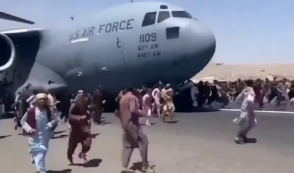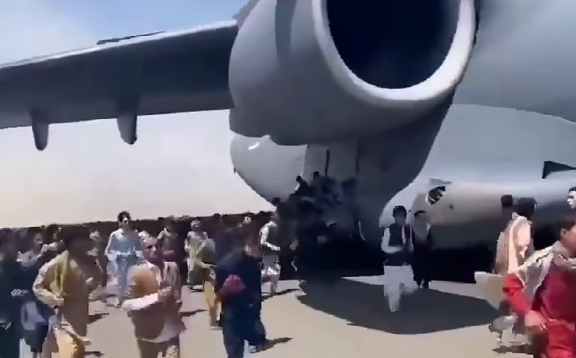 这架C-17就这么在直接碾过3人后径直起飞了,另有3名扒住飞机的人在起飞后从数十米的高空摔落,《每日邮报》还援引美军一名高级官员的消息称,机场内的美军还射杀了两名企图登上撤侨飞机的阿富汗武装人员。