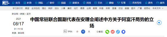 据新华社8月16日报道,中国常驻联合国副代表耿爽16日在联合国安理会紧急审议阿富汗问题公开会上发言,阐述中方关于阿富汗局势的立场。