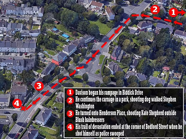 在西南部港口城市普利茅斯,6分钟的时间内,凶手手持一支霰弹猎枪,在家里杀害了自己51岁的母亲后,走上街头在沿途对多人进行射击,共造成5人死亡。