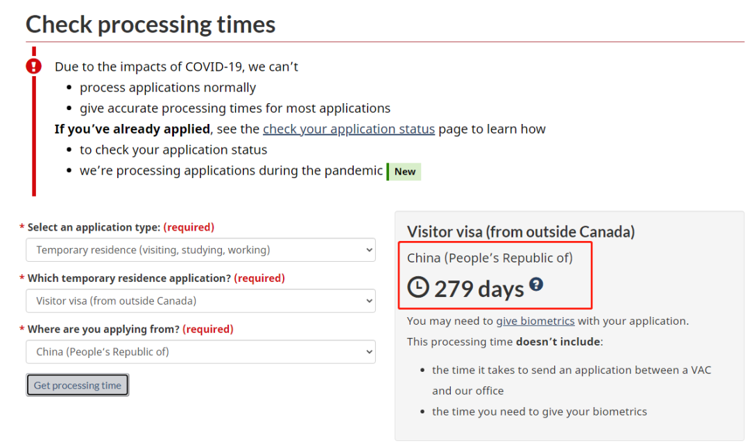 现在在中国申请加拿大小签,需要等待279个工作日!