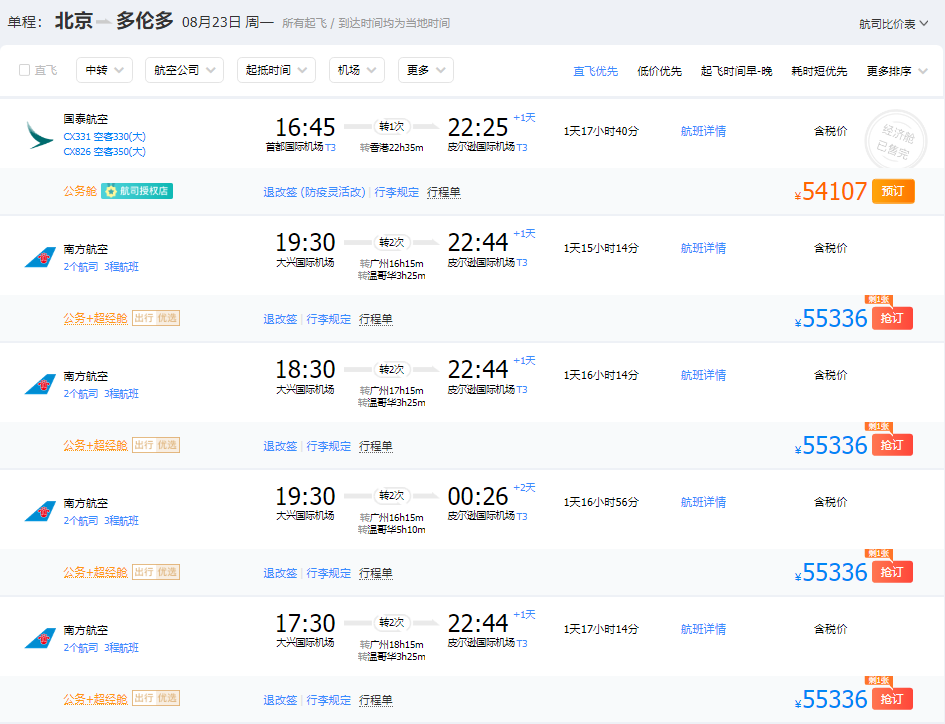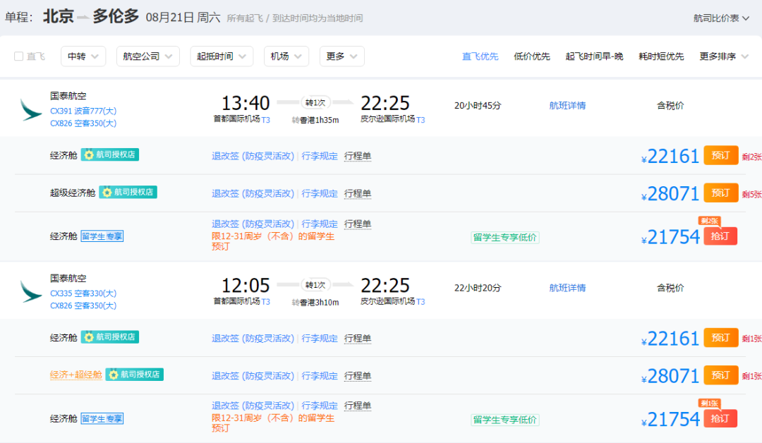 目前,根据携程官网显示,8月25日左右,从中国飞往加拿大的单程机票,普遍在5万左右,而且都不是直飞!