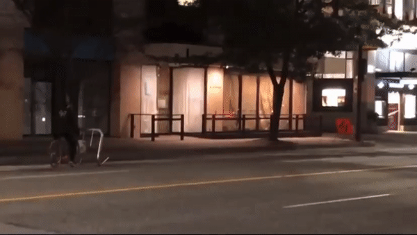 笨贼偷车的地方是在温哥华市中心West Georgia和Seymour的十字路口,路边人来人往,车流密集,他就这么淡定的hold着车架和自行车,慢吞吞地骑走了……
